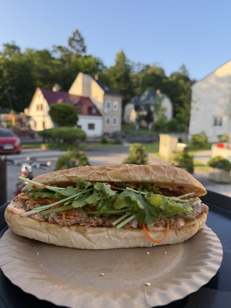 Vietnamská Bánh Mí bageta s vepřovým trhaným masem