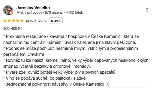 Pan majitel je osobně v kuchyni a připravuje pro vás výborné jídlo, ze surovin, které sám pečlivě vybral a předem ochutnal.